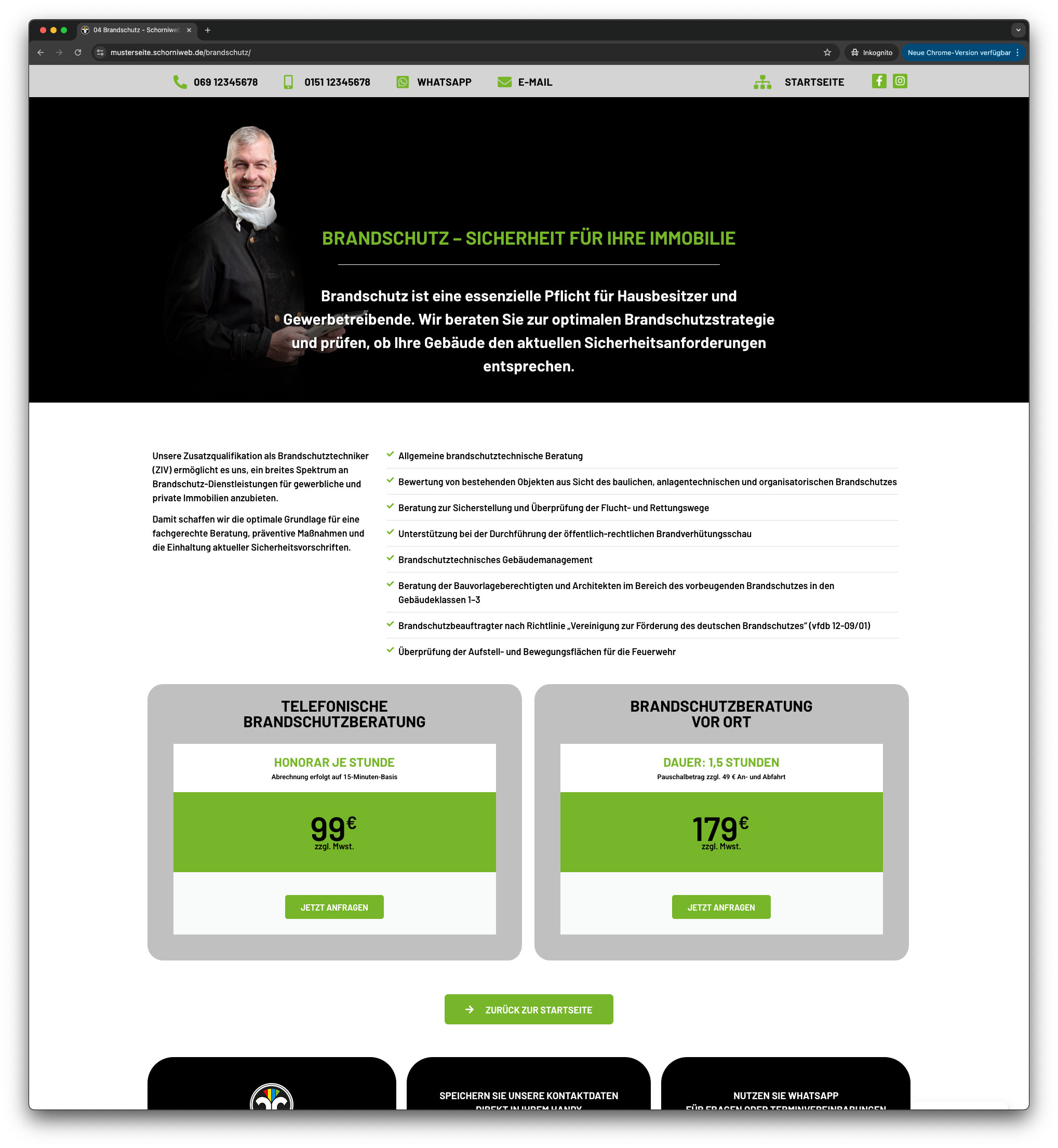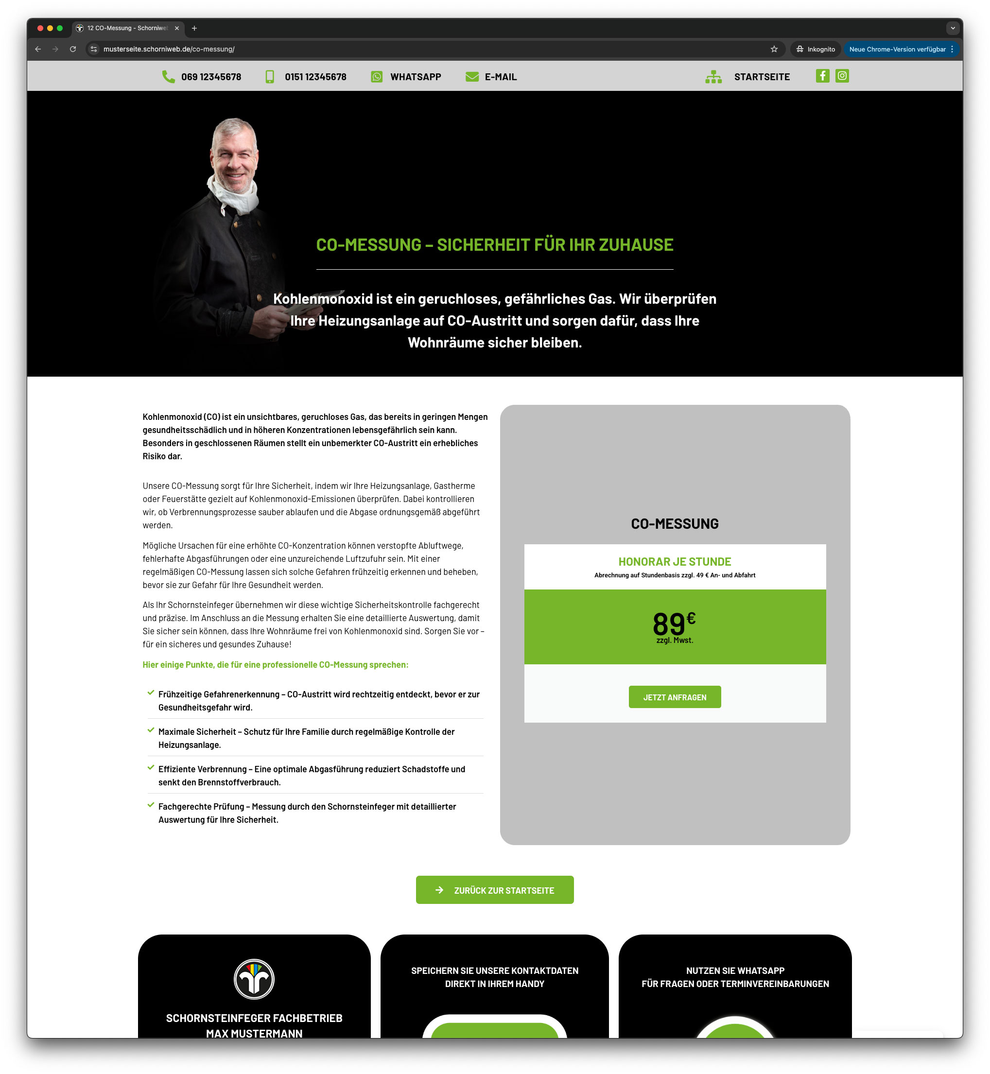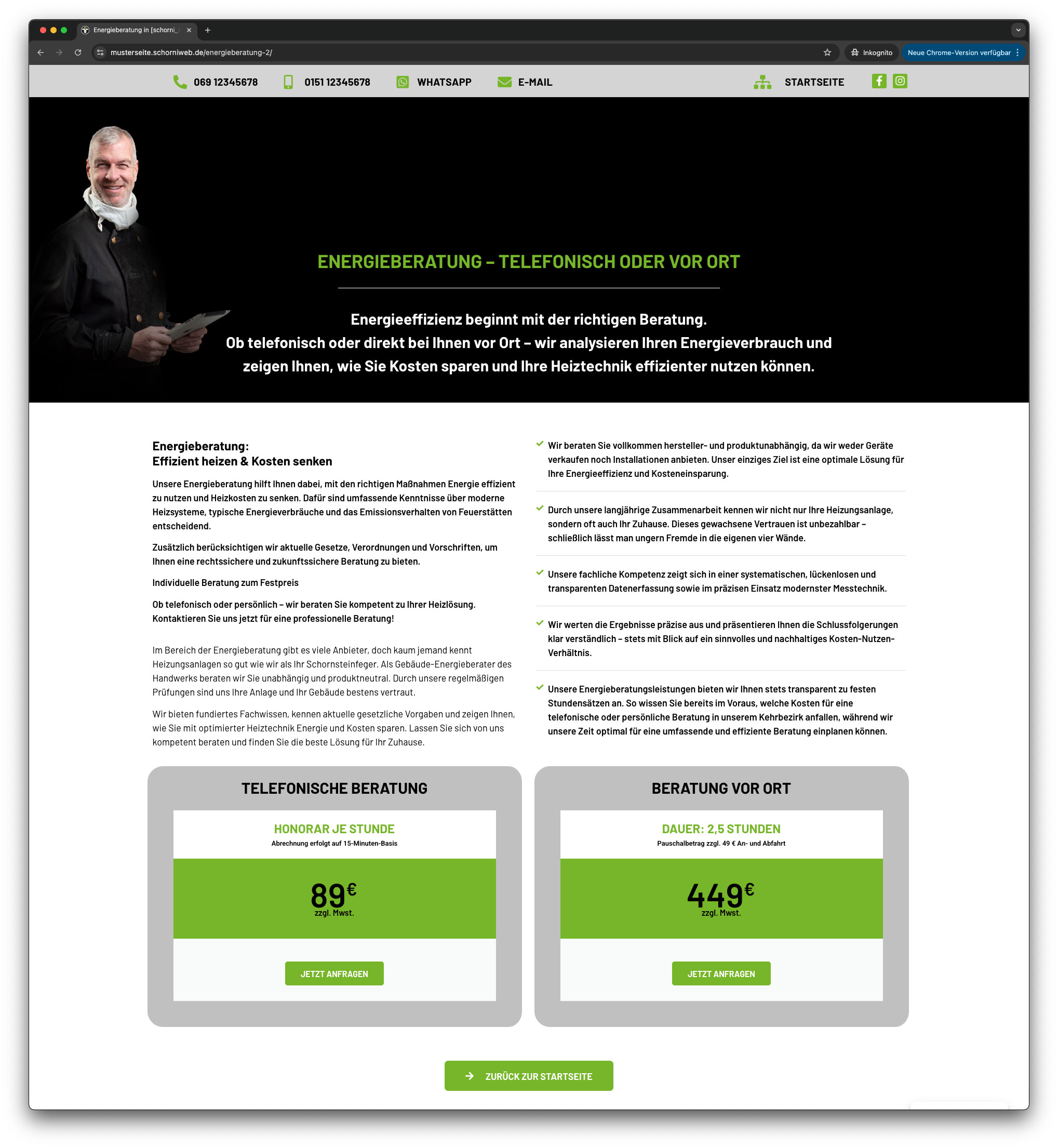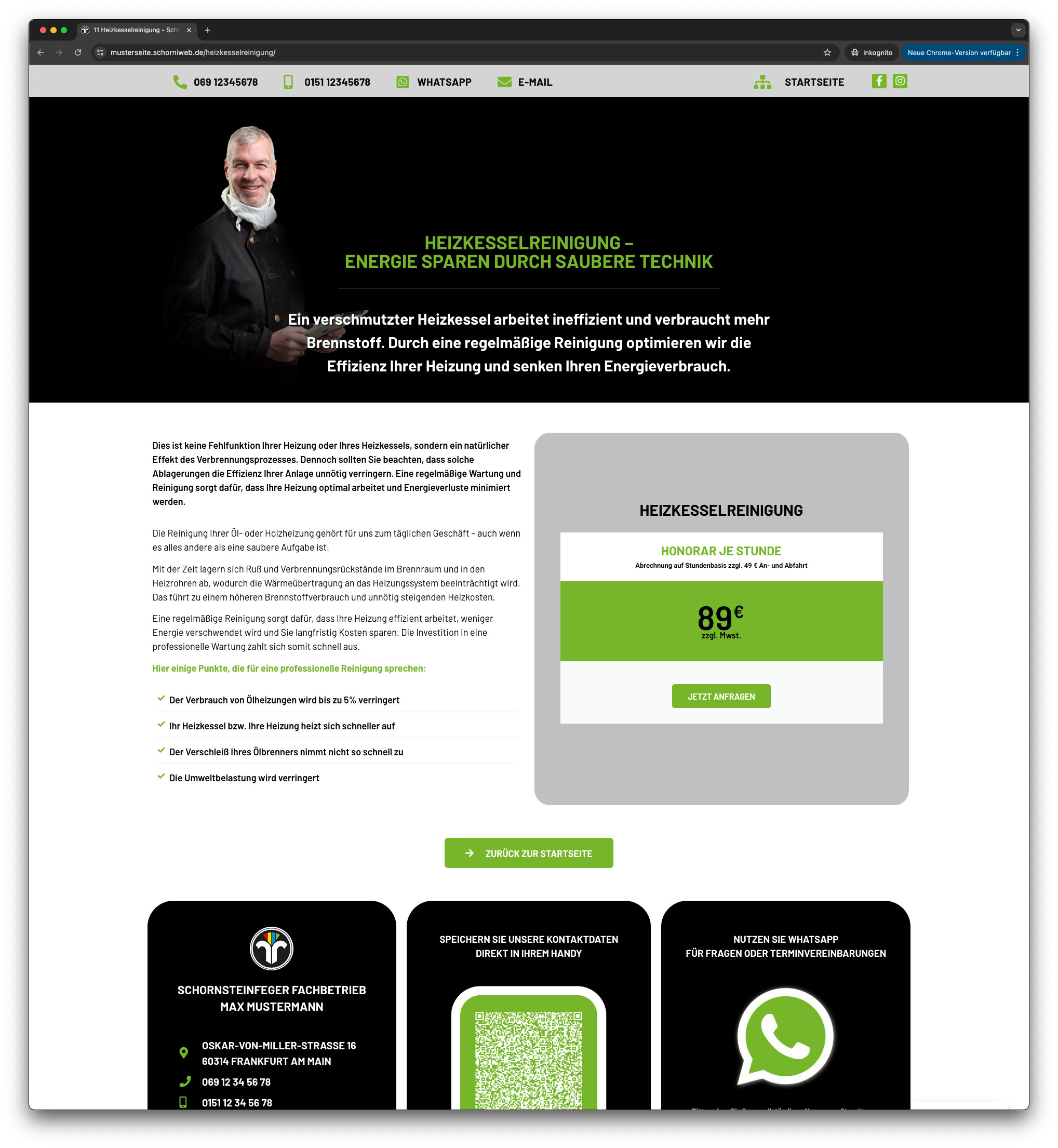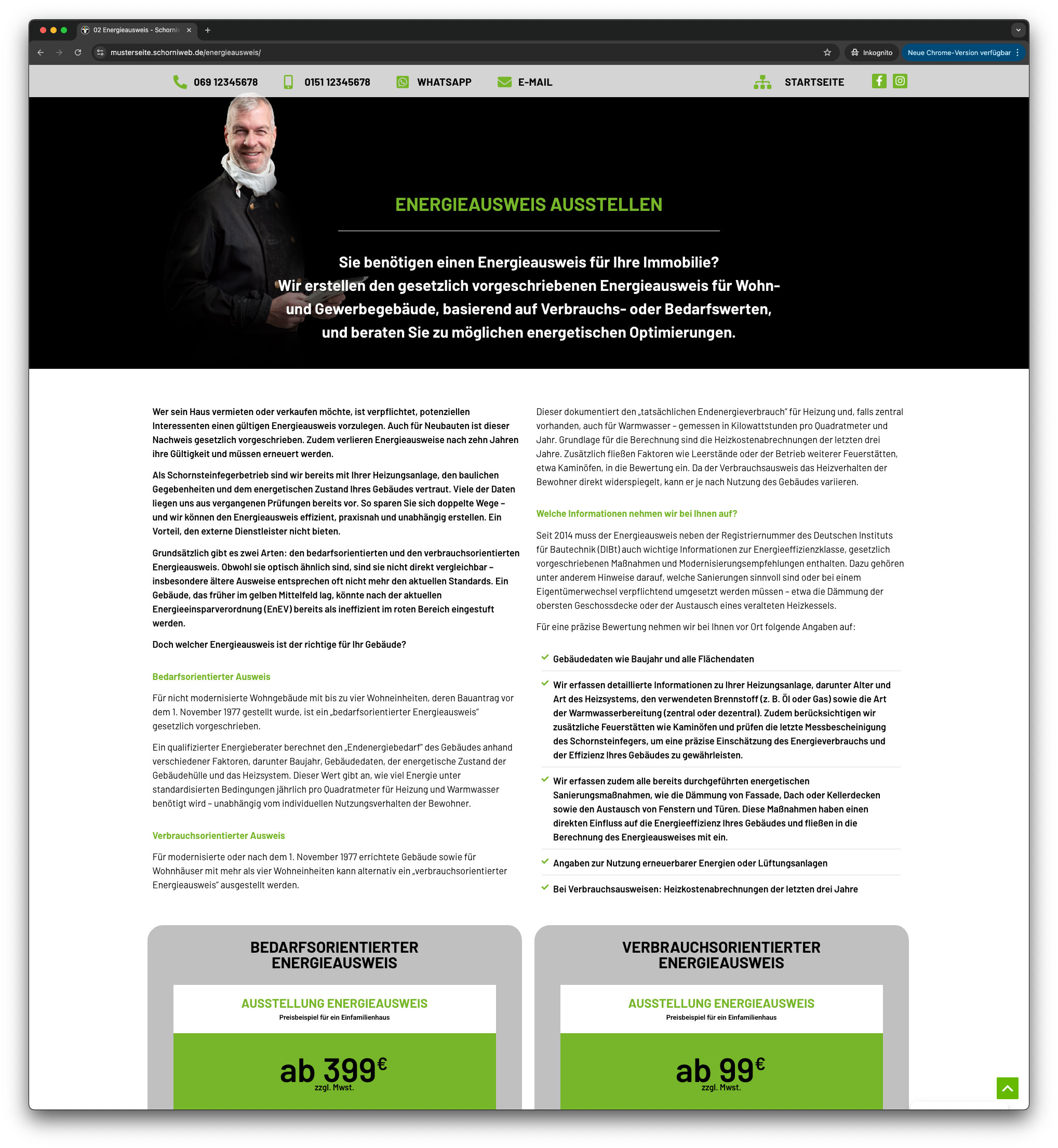 Beispiel einer modernen Webseite für Schornsteinfeger